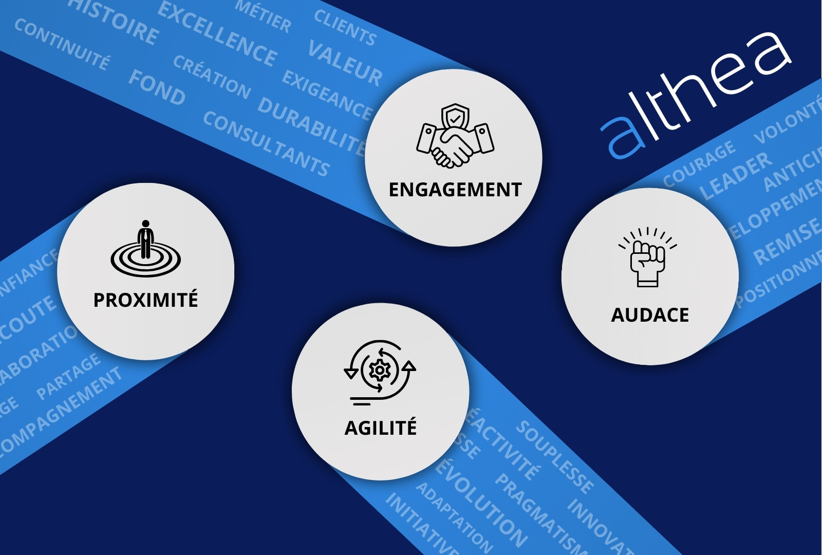 Chez Althéa, nos valeurs fondatrices structurent notre vision et nos actions au quotidien.